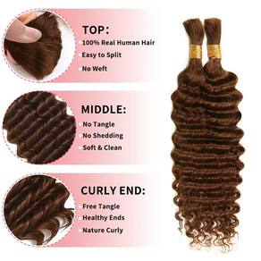 - ?Cabelo humano trançado de alta qualidade?: O cabelo humano de ondas profundas para tranças é feito de 100% cabelo humano virgem brasileiro 12A não processado. A textura do cabelo humano encaracolado para tranças boho é incrivelmente macia, natural, confortável, suave, comprimento verdadeiro, sem emaranhado, sem cheiro estranho, cheio e grosso. Nosso cabelo trançado pode naturalmente unir seu cabelo e apresentar efeitos realistas de penteado, para que você possa brilhar com confiança a qualquer hora, em qualquer lugar.