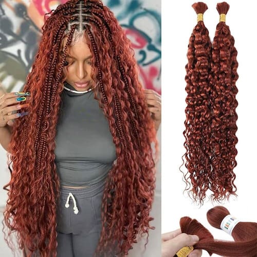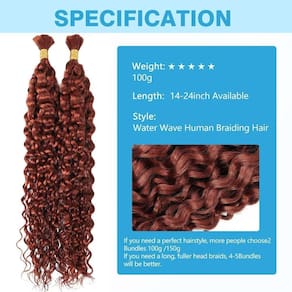 Cabelo Humano Gengibre Escuro Trançado Cabelo Humano Ondulado de Água Profunda 100 g 35 Polegadas Cor 350 Cabelo Humano Encaracolado para Tranças Boho Extensões de Cabelo Sem Trama 2 Tranças por Pacote Cabelo Humano Molhado e Ondulado