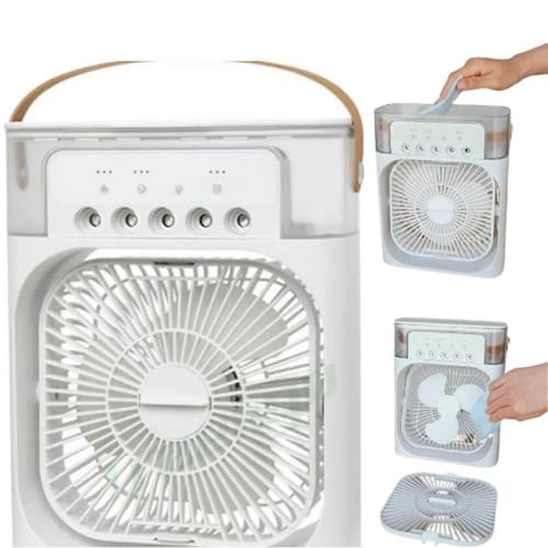 Posso regular a intensidade do vento Resposta: sim, ele tem a opção de 3 velocidades. Qual é a voltagem dele Resposta: ele é bivolt, funciona em todos os locais do brasil. O produto possui função sleep desligamento automático Resposta: sim, tem um timer com a função para programar 1, 2 ou 3 horas para desligar. Ele é giratório Resposta: sim, ele pode ser posicionado manualmente para cima e para baixo. O produto consome muita energia Resposta: não, o produto exige pouca energia para funcionamento. Qual a quantidade de água suportada em seu recipiente Resposta: a capacidade do mini climatizador de ar é de 600ml. Qual é o alcance da ventilação Resposta: o alcance gira em torno de 5 metros, mas o mesmo climatiza o ar quando o ambiente está fechado. Marca: AL