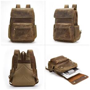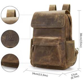 Material de qualidade premium Esta mochila é feita de couro de cavalo louco de alta qualidade. O couro de cavalo louco é feito de couro de alta qualidade, com uma espessura de 2,, que é sólido e durável. artesanal, a sensação da mão da superfície do couro é escorregadia e frutada. Ele passa a ter efeito alocróico quando a mão puxa e estica a superfície. Mais tempo de uso, mais brilho para a pátina superficial.