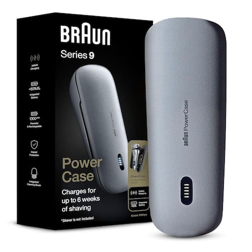 Conheça o braun powercase: o primeiro estojo carregador para barbeador totalmente portátil do mundo. O estojo oferece 50% mais autonomia da bateria, até 6 semanas de barbear sem fio a qualquer hora e em qualquer lugar. O powercase é feito de materiais premium duráveis e foi projetado para proteger seu barbeador contra impactos, arranhões, poeira e derramamentos. Totalmente compatível com os barbeadores elétricos masculinos braun series 9 pro, series 9 e series 8. Proteja seu barbear elétrico: o powercase é feito de materiais premium, projetado para proteger contra batidas, arranhões, derramamentos e danos causados por poeira. Até 90 minutos de barbear sem recarregar: o powercase oferece +50% de autonomia graças à sua potente bateria de íons de lítio integrada. Primeiro estojo de carregamento para barbear móvel do mundo: com até 6 semanas de barbear sem fio sem recarga. Compatível com barbeares série 8 e 9: o powercase é totalmente compatível com todos os barbeadores elétricos braun série 9 e série 8. Indicador led de bateria e escova de limpeza integrada. Contém 1 estojo dos eua Ean: 4210201394457