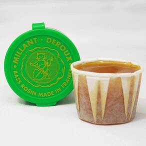 Breu Millant Deroux para Contrabaixo Acústico Millant Deroux Rosin para Contrabaixo Acústico O Millant Deroux se caracteriza por sua cor caramelo, que mostra sua resina vegetal. Ressonância sonora no ponto ideal para cordas de núcleo híbrido ou sintético. O material básico do breu Millant é a resina vegetal de colofónia Deroux altamente refinada que produz um som claro e focado e uma execução mais suave. Sua qualidade característica se dá pela utilização de componentes selecionados e diferenciados. Breu de linha profissional e estudante procurado por contrabaixistas do mundo inteiro.