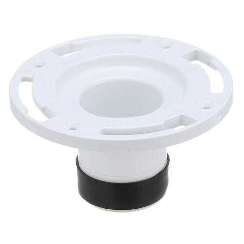 Brida para inodoro Oatey Twist-N-Set de PVC de 3 pulgadas. - Reemplaza bridas rotas para inodoro. - Se instala dentro de tuberías de PVC y hierro fundido de 3 pulgadas. - Instalación sencilla sin herramientas. - Diseño con flujo suave y sin restricciones. - La junta se expande para ajustarse a tuberías de servicio estándar, peso pesado y sin brida. - Reemplaza bridas de hierro fundido rotas. - No es necesario romper el piso existente. - La junta se expande para ajustarse a tuberías de servicio estándar, peso pesado y sin brida.