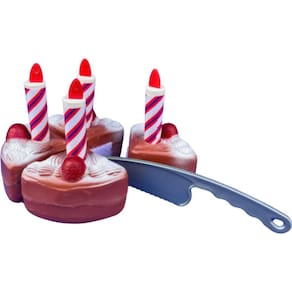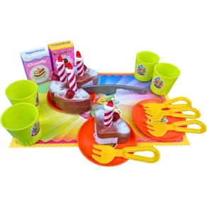 Indicado a partir de 03 anos, o produto inclui 4 fatias de bolo, 4 copinhos, 4 garfinhos, 4 pratinhos, 4 velinhas, 1 faca grande, 1 toalha cartonada , 2 caixas cartonadas para se divertir brincando!