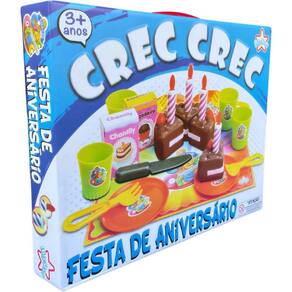 O Kit de Crec-Crec Aniversário vem com muitas peças para brincar de montar bolos deliciosos e servir.