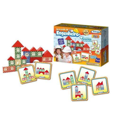 Original desde 1956, com o Brincando de Engenheiro é possível divertir gerações com um mesmo produto. O Brincando do Engenheiro + Memória é composto de 42 peças de engenheiro e mais 24 peças de memória em madeira reflorestada e tinta atóxica. São vários formatos, que possibilitam montagens infinitas, o que faz com que as criações fiquem do tamanho que você quiser, você pode montar pequenas cidades. O jogo contribui para o desenvolvimento do pensamento lógico e auxilia nas noções de espaço e coordenação motora da criança, podendo ser utilizado tanto individualmente quanto em grupo. Indicado para crianças a partir de 3 anos. Bora brincar e se divertir!