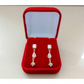 Brinco 3 pedras Zircônia Banho de Ouro 18k