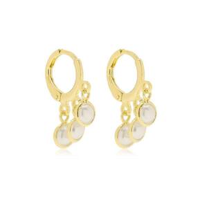 Brinco Argola 3 Pérolas Banhado A Ouro 18K