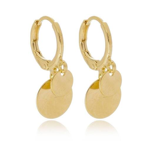 Brinco Argola Banhado A Ouro 18k Com Chapinhas Brinco Argola Banhado a Ouro 18k Com Chapinhas - Brinco banhado a ouro 18k com design minimalista de dois discos pendentes. Elegante e versátil, perfeito para diversas ocasiões. Brilho sofisticado e moderno.