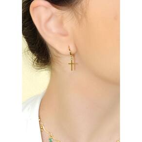 Produzido com material folheado de ótima qualidade, esse brinco garante durabilidade e resistência. Além disso, ele conta com uma cruz pendurada na argola, o que traz um toque de religiosidade e simbolismo para a peça.