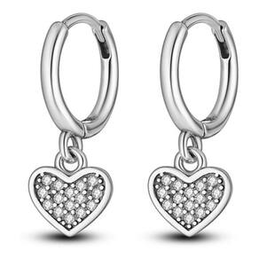 "Mostre o seu amor e estilo com esses belos brincos de argola de prata 925 com pingente de coração cravejado de zircônia. Um acessório delicado e sofisticado para expressar o seu amor de maneira elegante."