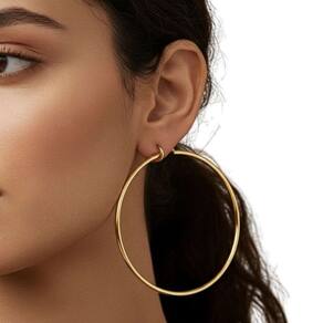 Brinco argola grande banhado a ouro, ideal para quem busca elegância e estilo em um único acessório. Com 85 mm de diâmetro, este modelo combina design moderno e acabamento sofisticado, oferecendo brilho intenso e durabilidade.