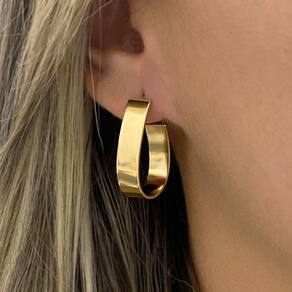 Brinco Argola Oval Chapada Banhado a Ouro