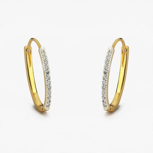 Delicada Argola com fechamento click, com a frente cravejada com Zirconias Cristais, muito leve e elegante, se parecendo com uma verdadeira Jóia.