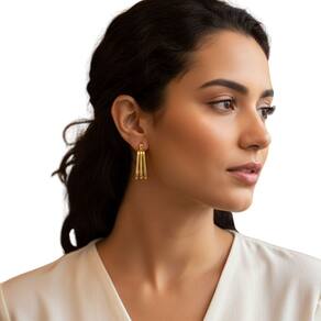 META DESCRIPTION: Brinco dourado geométrico banhado a ouro 18K, moderno e elegante para qualquer ocasião.