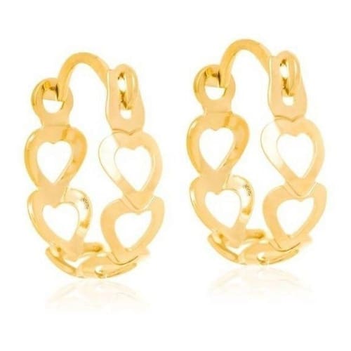 Brinco argola com corações lisos vazados 1,5 cm diâmetro