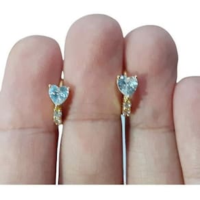 Brinco banhado a ouro ou ródio com pedra de zircônia. Antialérgico. 9 mm de diâmetro interno. Serve para adultos e crianças. É muito delicado. Marca: De Castro Joias Ean: 7892995541360