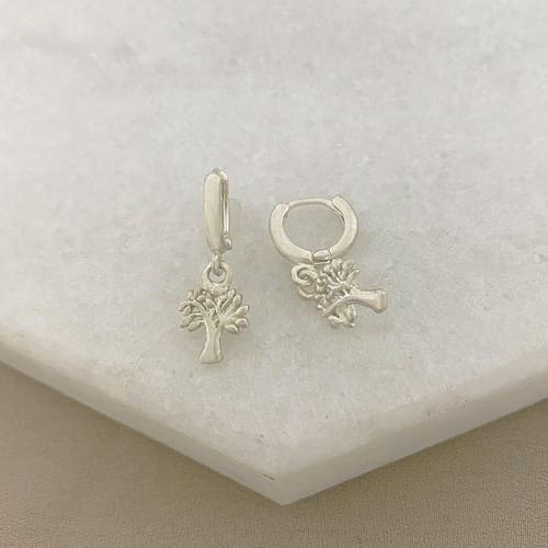 Brinco Argolinha com Pingente Árvore da Vida em Prata 925