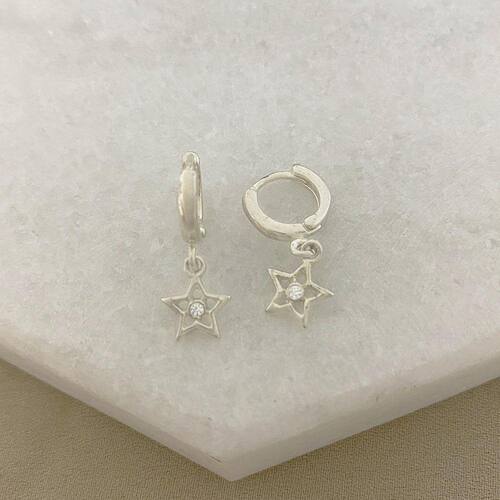 Brinco Argolinha com Pingente de Estrela e Ponto de Luz de Zircônia em Prata 925