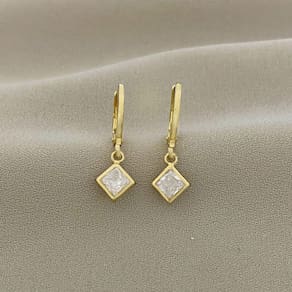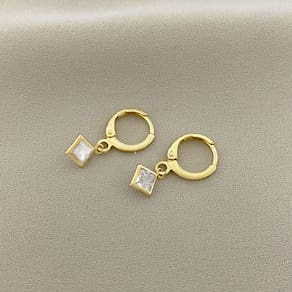 Brinco Argolinha com Pingente Quadrado Ponto de Luz de Zircônia Banhado a Ouro
