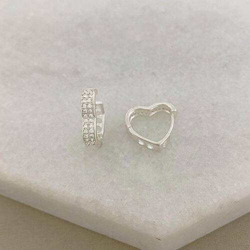 Brinco Argolinha Coração Cravejada com Zircônia e detalhes Vazados de Coração em Prata 925