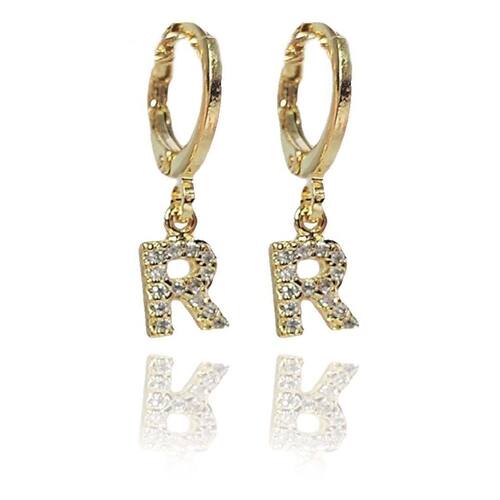 Brinco argolinha de letras com zircônias