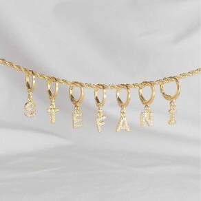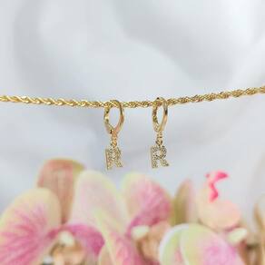 Esse brinco é composto por uma argolinha articulada seguida de uma letra toda trabalhada em zircônias, um encanto de acessório que tras um charme único assim como você