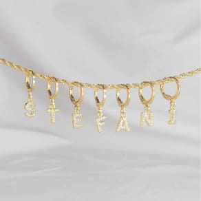 Brinco argolinha de letras com zircônias Nome: letra Esse brinco é composto por uma argolinha articulada seguida de uma letra toda trabalhada em zircônias, um encanto de acessório que tras um charme único assim como você Essa argolinha é delicada e discreta, mas pode ser o detalhe que faltava no seu mix de brincos. Perfeita para quem tem aquela agenda lotada de compromissos, já que se encaixa perfeitamente em diversas ocasiões. Fica linda em looks mais formais e também em uma composição informal, nós garantimos que estará linda em qualquer ocasião. Use e abuse da sua criatividade na hora de elaborar combinações, se você tem mais de um furo sinta-se livre para usar outras argolinhas, mas se tem apenas um furo o piercing fake é perfeito para uma composição de arrasar. Compre agora e continue arrasando em seus looks Esse acessório é hipoalergênico e níquel free Dados técnicos: Diâmetro: 2cm. Material: banhado em ouro 18k Dica: para manter sua peça sempre com brilho evite o contato dela com lugares úmidos e molhados, exemplo piscinas, mar e durante o banho. : 1 ano.
