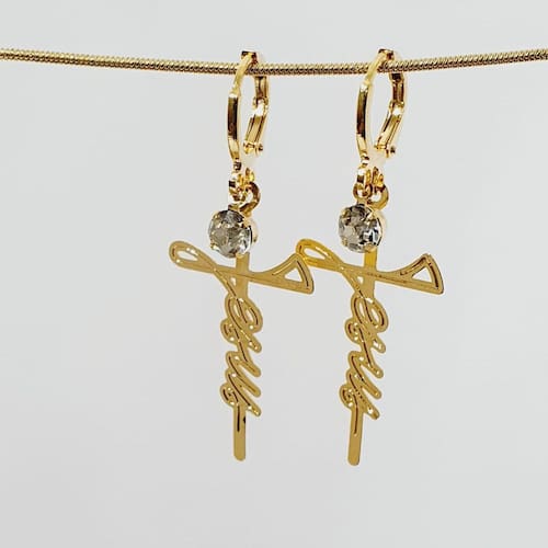 Brinco argolinha Jesus com ponto de luz folheado a ouro 18 k