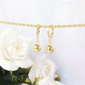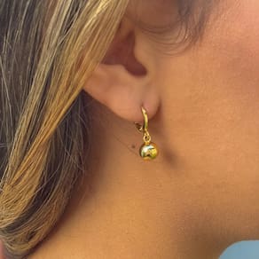 A estrela deste brinco é a bola dourada na ponta da argola, que adiciona um toque de glamour e destaque ao seu visual.