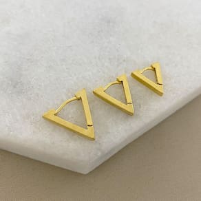 Brinco Argolinha Triângulo Vazado Banhado a Ouro
