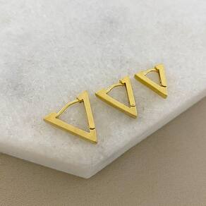 Brinco Argolinha Triângulo Vazado Banhado a Ouro