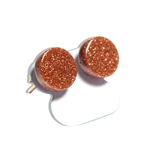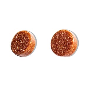 Nome da Pedra: Pedra do Sol (pedra sintética reconstituída) Cor: Marrom com cintilação dourada (imagem ilustrativa) Formato da Pedra: Disco Textura e Brilho: Vitrio opaco com efeitos cintilantes Tamanho da Pedra: 9 mm de diâmetro Peso Total: Aproximadamente 5 quilates por par Metal: Niquelado em dourado Origem da Montagem: Produção artesanal em Curvelo, Minas Gerais Destaques: Pedra do Sol: Pedra sintética reconstituída com efeito cintilante único. Lapidação artesanal: Formato disco que destaca o brilho e a cor da pedra. Acabamento dourado: Toque de sofisticação que valoriza o visual. Versatilidade: Ideal para diversas ocasiões, combinando com diferentes estilos.