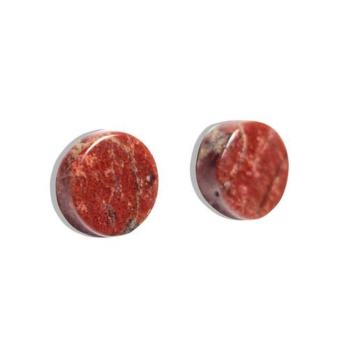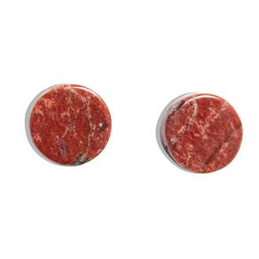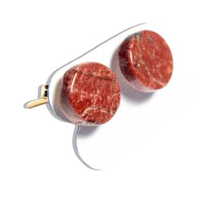 Brinco Botton de Dolomita Vermelha - Pino e Tarracha com Flash Dourado