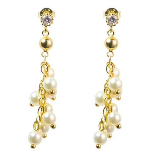 Elegante Brinco Cacho de Pérolas e Ponto de Luz Semijoia Banho de Ouro 18K. As peças recebem um tratamento hipoalergênico, pensando especialmente em nossos clientes, embalado individualmente com embalagens personalizadas preparado com muito carinho acompanhado pelo certificado de garantia. Perfeito para embelezar e completar seu estilo com delicadeza e sofisticação. Confira as dimensões: Altura: 0,5 cm , Largura: 0,5 cm , Comprimento: 4,6 cm , Peso: 4 g