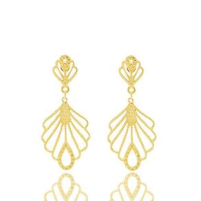Brinco Com Detalhes Vazados Lindo Folheado A Ouro18k