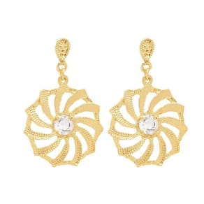 Brinco Com Pedra Strass Detalhado Folheado A Ouro 18k
