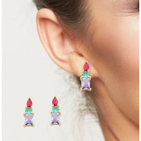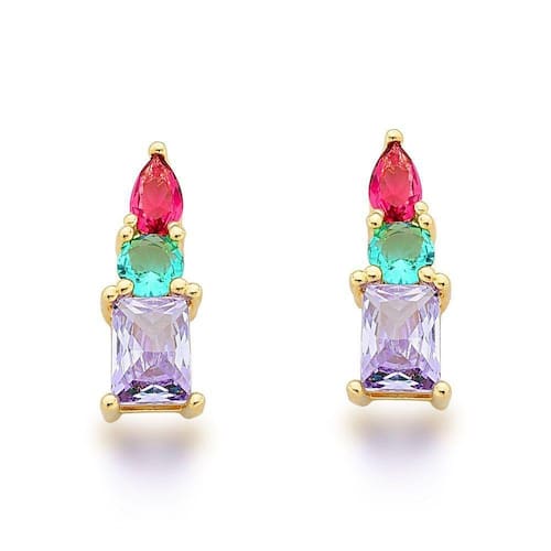Brinco com Zirconias Coloridas Banhadas a Ouro 18k. Coleção de brincos coloridos e com Fácil combinação.