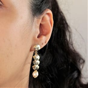 Elegante Brinco Conchas Penduradas e Pérola Semijoia Banho de Ouro 18K. As peças recebem um tratamento hipoalergênico, pensando especialmente em nossos clientes, embalado individualmente com embalagens personalizadas preparado com muito carinho acompanhado pelo certificado de garantia. Perfeito para embelezar e completar seu estilo com delicadeza e sofisticação. Confira as dimensões: Altura: 0,8 cm , Largura: 1 cm , Comprimento: 4,2 cm , Peso: 3 g