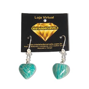 Adquira Já o Seu Brinco Coração de Amazonita – Proteção, Força e Elegância em Uma Só Peça! Marca: CristaisdeCurvelo