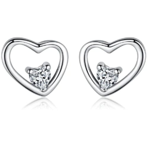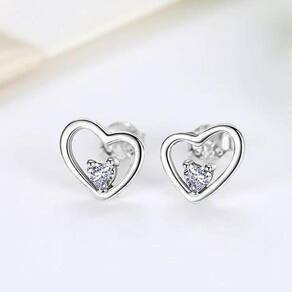 "Brilho eterno em forma de coração: este delicado brinco de prata 925 é adornado com zircônias cintilantes, capturando a beleza efêmera do amor e da elegância. Uma fusão perfeita entre design romântico e sofisticação atemporal."