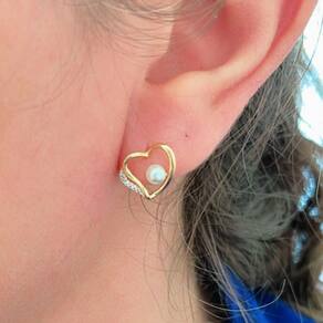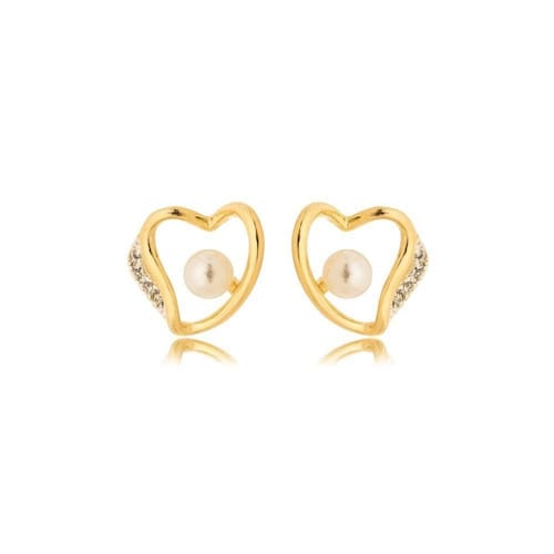 Brinco Coração Com Perola Sintética Banhado A Ouro 18k Brinco Coração com Perola Sintética Banhado a Ouro 18k 1cm - Brinco Coração com Perola Sintética Banhado a Ouro 18k Brinco Coração com Perola Sintética Banhados Ouro 18k Brinco delicado e feminino, banhado a ouro 18k, em formato de coração, com detalhes em zircônias cravejadas de um lado e uma pérola sintética centralizada no interior do coração. Essa semijoia é perfeita para ocasiões especiais ou para adicionar um toque elegante ao dia a dia.