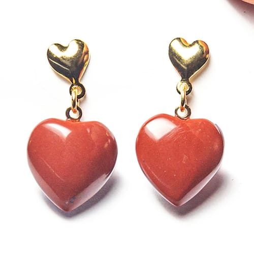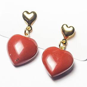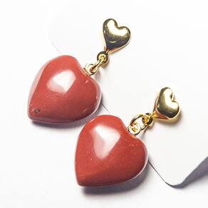 Brinco Coração de Jaspe Vermelho Natural - Montagem Dourada Artesanal com Tarraxa Aposte no poder e na beleza do Brinco Coração de Jaspe Vermelho Natural, uma joia única com lapidação artesanal em formato de coração, simbolizando força e vitalidade. Ideal para quem busca uma peça sofisticada e cheia de significado, esse brinco combina o vermelho intenso do jaspe com o elegante acabamento dourado. Características do Produto: