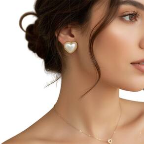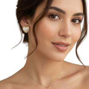 Brinco elegante em formato de coração com acabamento em pérola, ideal para compor looks delicados e sofisticados. Feito em liga metálica banhada e pino em prata 925, garantindo conforto e qualidade.