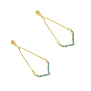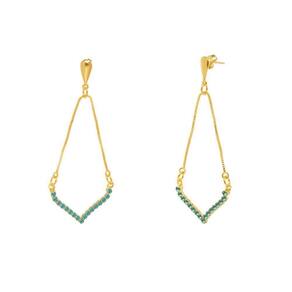 Brinco Corrente Veneziana Strass Azul Turqueza Folheado A Ouro 18k