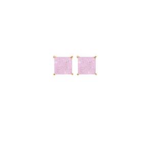 Brinco Cristal Rosa Quadrado Folheado A Ouro 18K