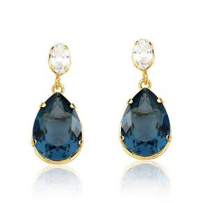 O Brinco Crystal Drop Blue, trás a elegância do Cristal Gota Azul Indigo e a Pureza e Alegria simbolizados nos cristais que acompanham a corrente. Uma composição belíssima com Revestimento em Ouro. Confira também em nosso catálogo o Colar Drop Blue Revestido em Ouro (VLVL148) e garanta um belo conjunto!
