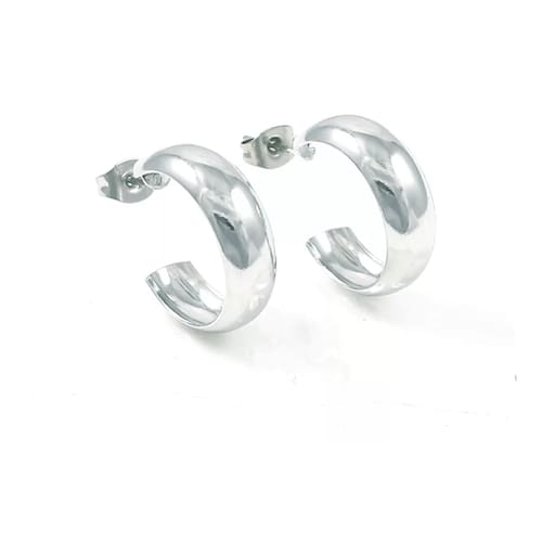1 x Brinco de Argola Feminina Prateado de Tarraxa Aço Inoxidável