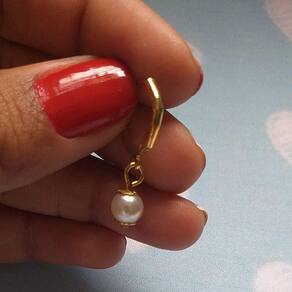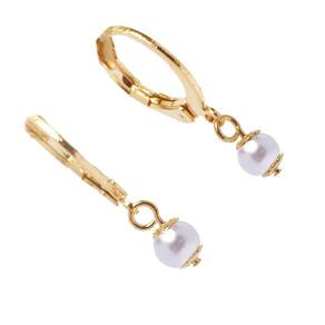 Brinco De Argolinha Perola Delicada Folheado A Ouro 18k