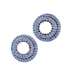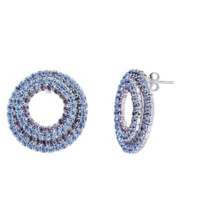 Brinco De Cristais Redondo Azul Folheado A Metálico